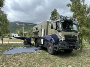 Stellplatz am Stadtrand beim Hotel Nordpark. Sightseeing inkl. Bunkertour in Tirana.
