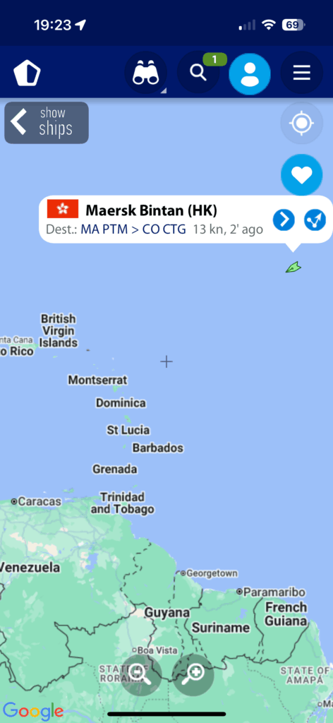 Nach einem Stop in Tanger Med (Marokko) wurde die Atlantiküberquerung nach Cartagena (Columbien) gestartet wo der Schiff ungefähr am 18. September ankommen soll.